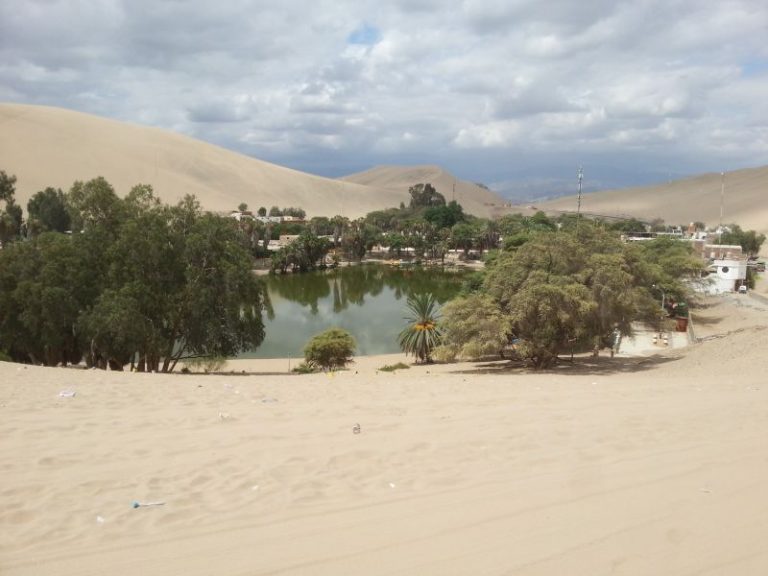 21 An hour’s drive from Paracas, the public bus arrived at Huacachina, South America’s only oasis. The place looked quite ridiculous. Bizarre, really, a little pond in the middle of nothing but sand and sand hills that almost arched over…